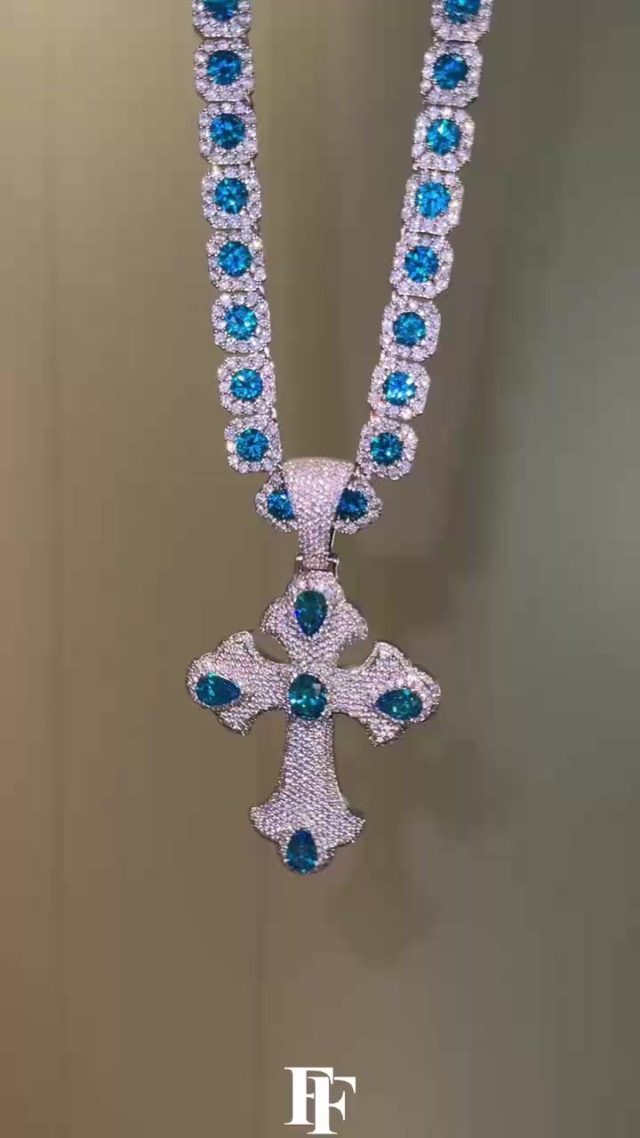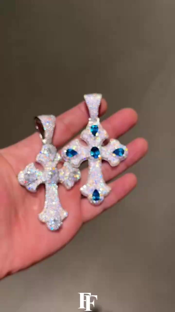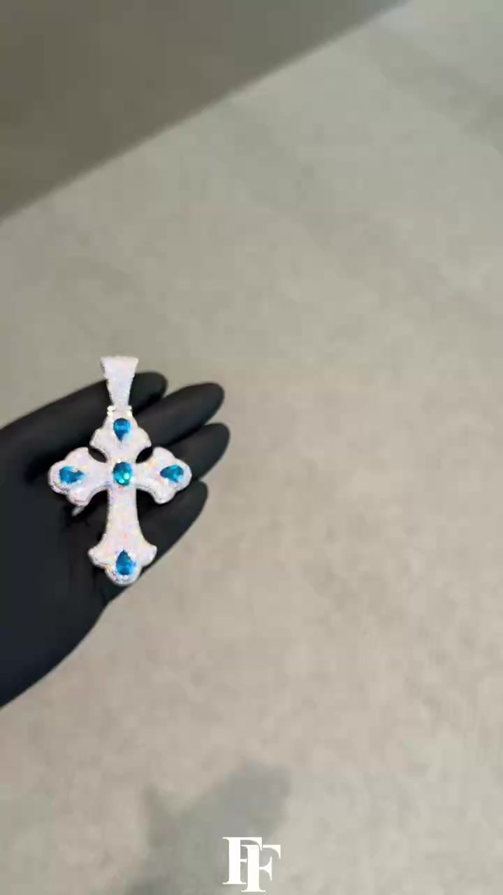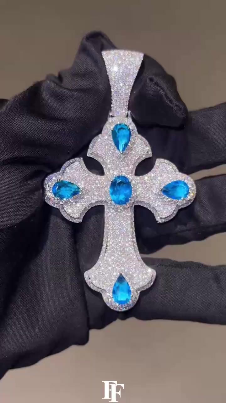 Interlaced and inlaid Baroque crosses The main stone is sea blue and green