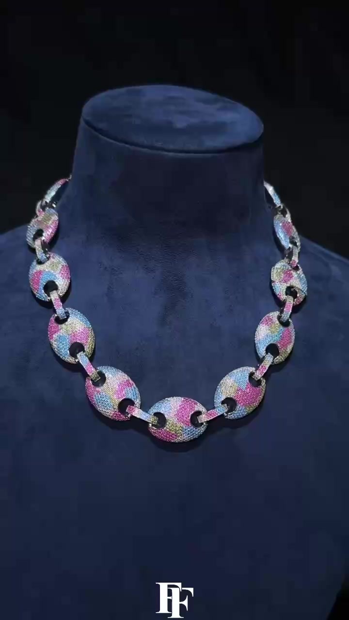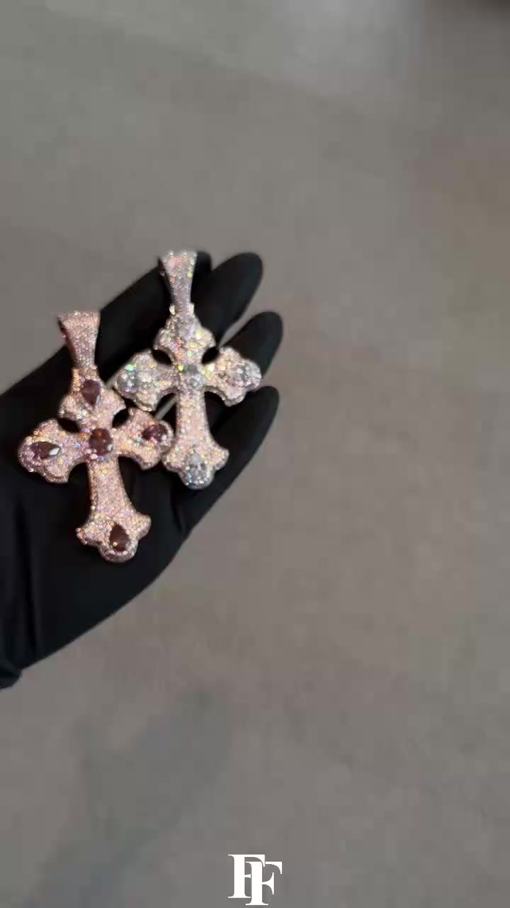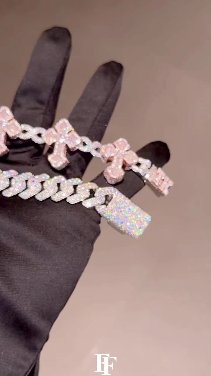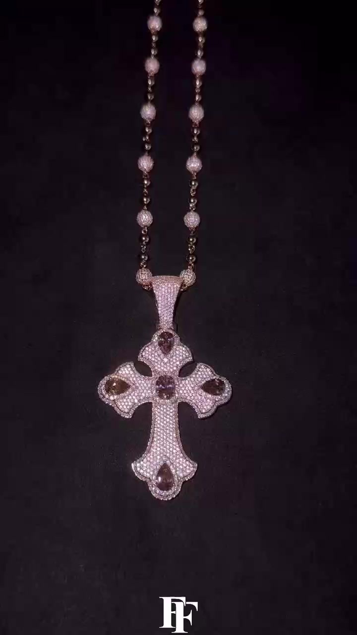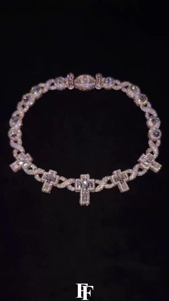 7mm diamond-encrusted bead chain Cross-cut Baroque fully diamond cross