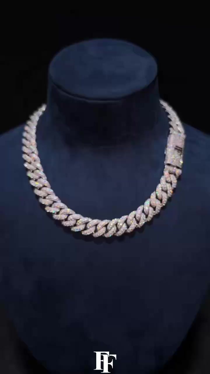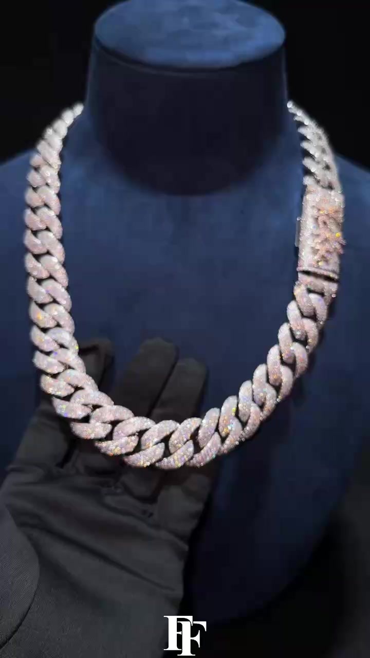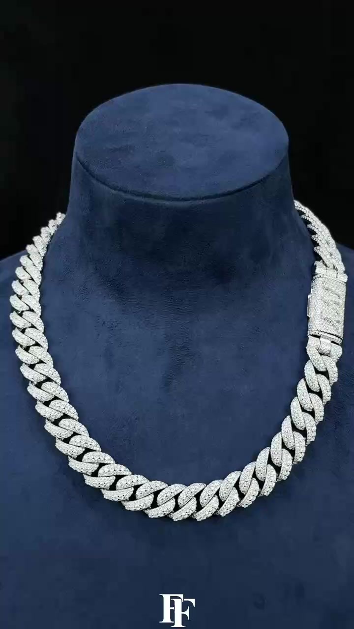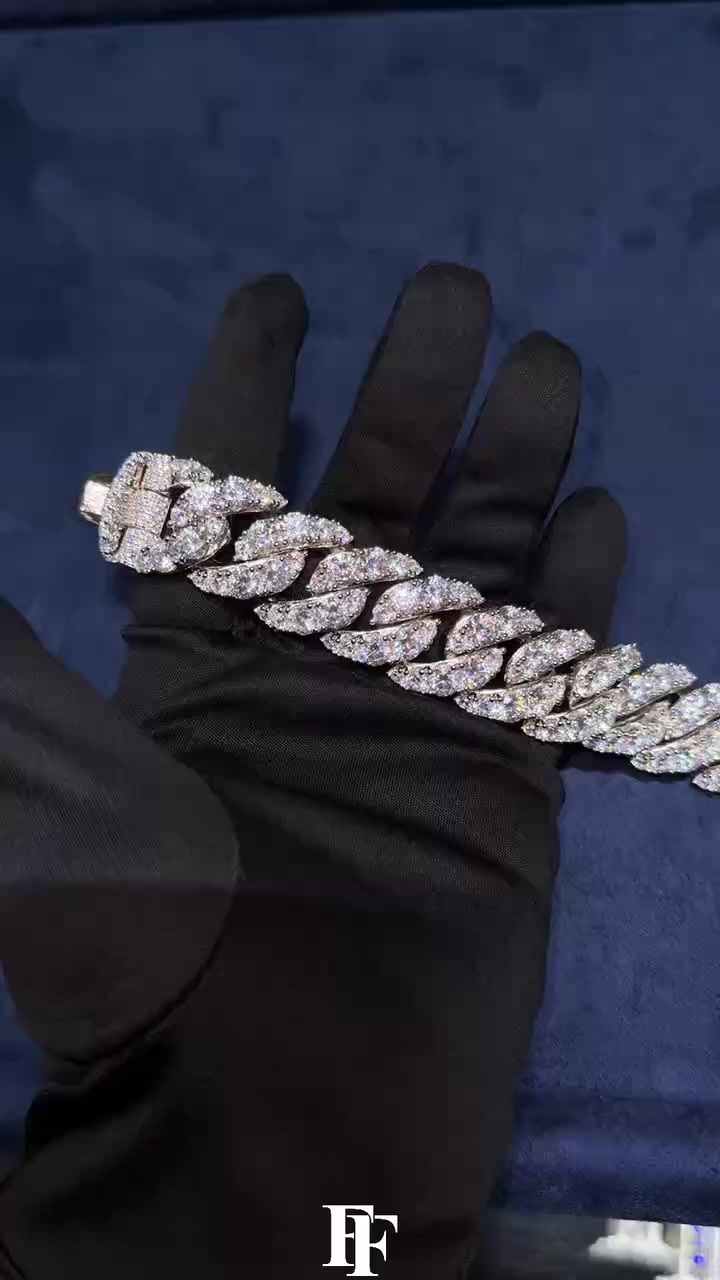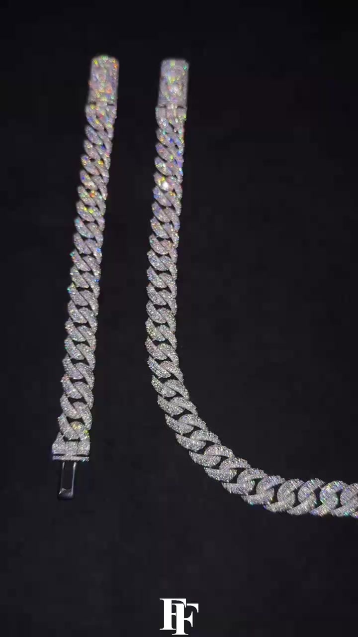 14mm two-row diamond-shaped Cuban chain 925 silver set with D-color VVS Moissanite
