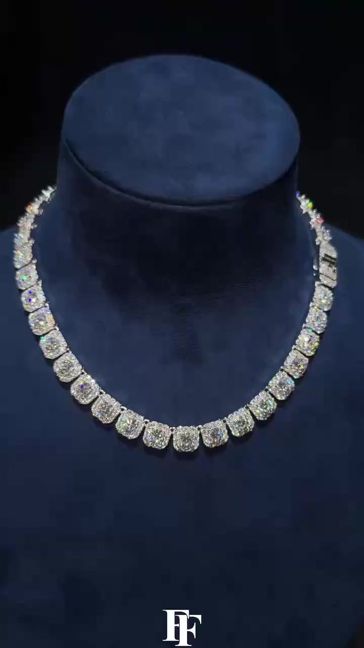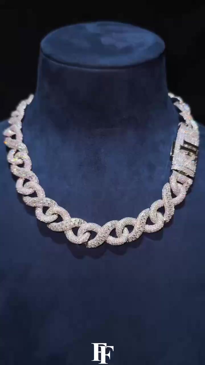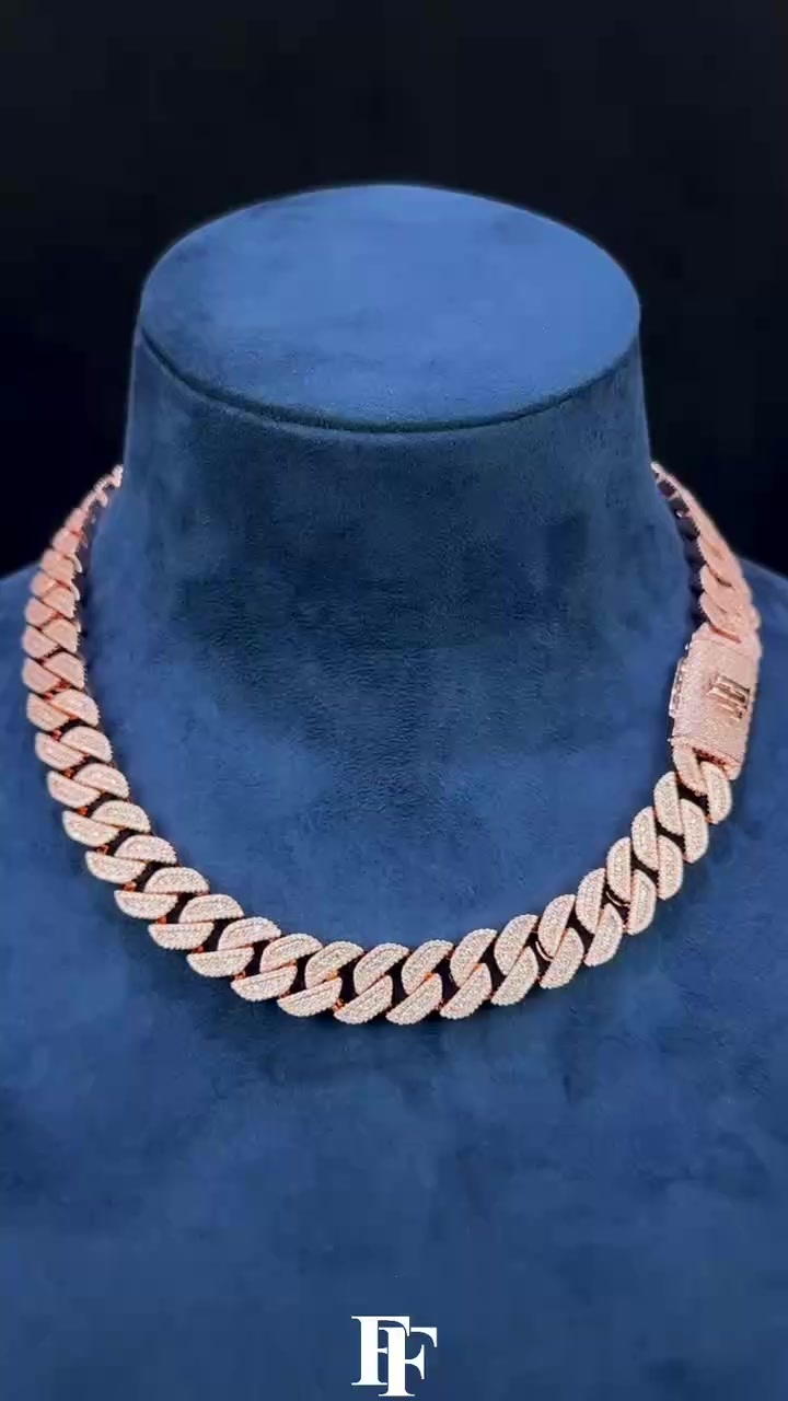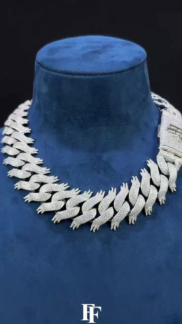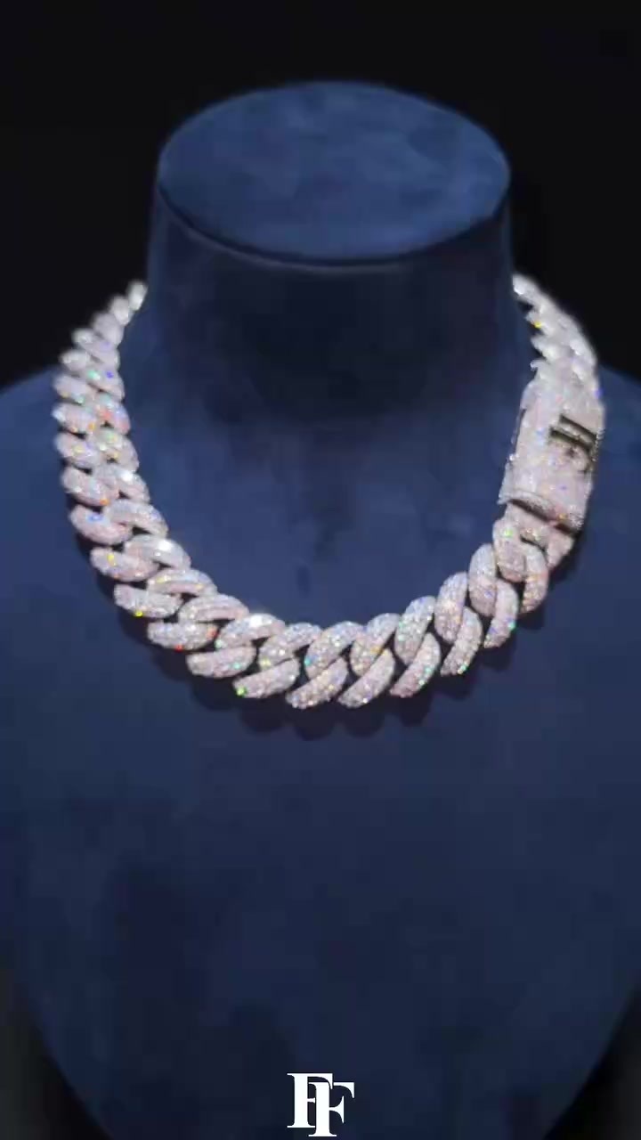 14mm two-row diamond-shaped Cuban chain 925 silver set with D-color VVS Moissanite