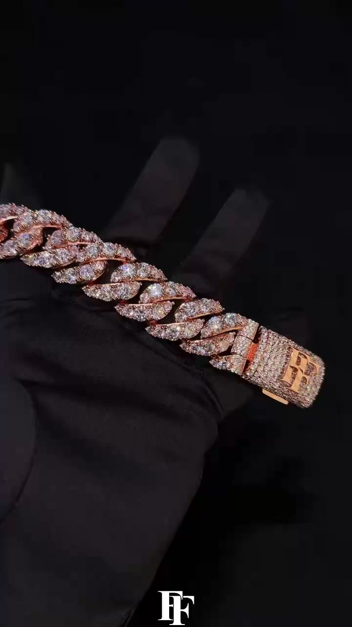 20mm single-row large diamond Miami Cuban bracelet Rose gold