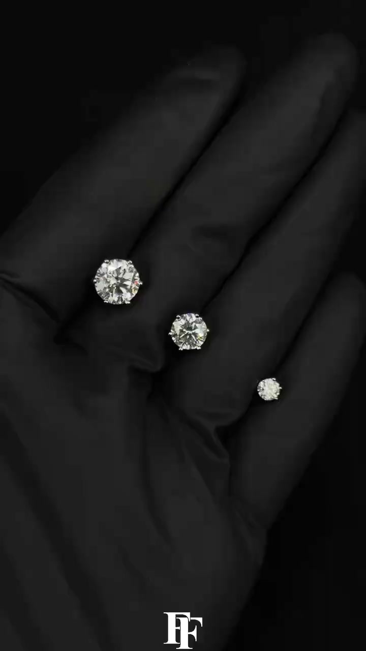 VVS Moissan drill stud earrings 8/6.5/4 mm