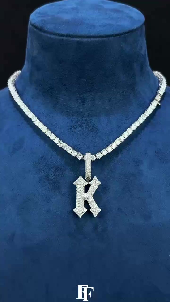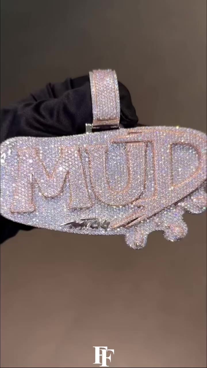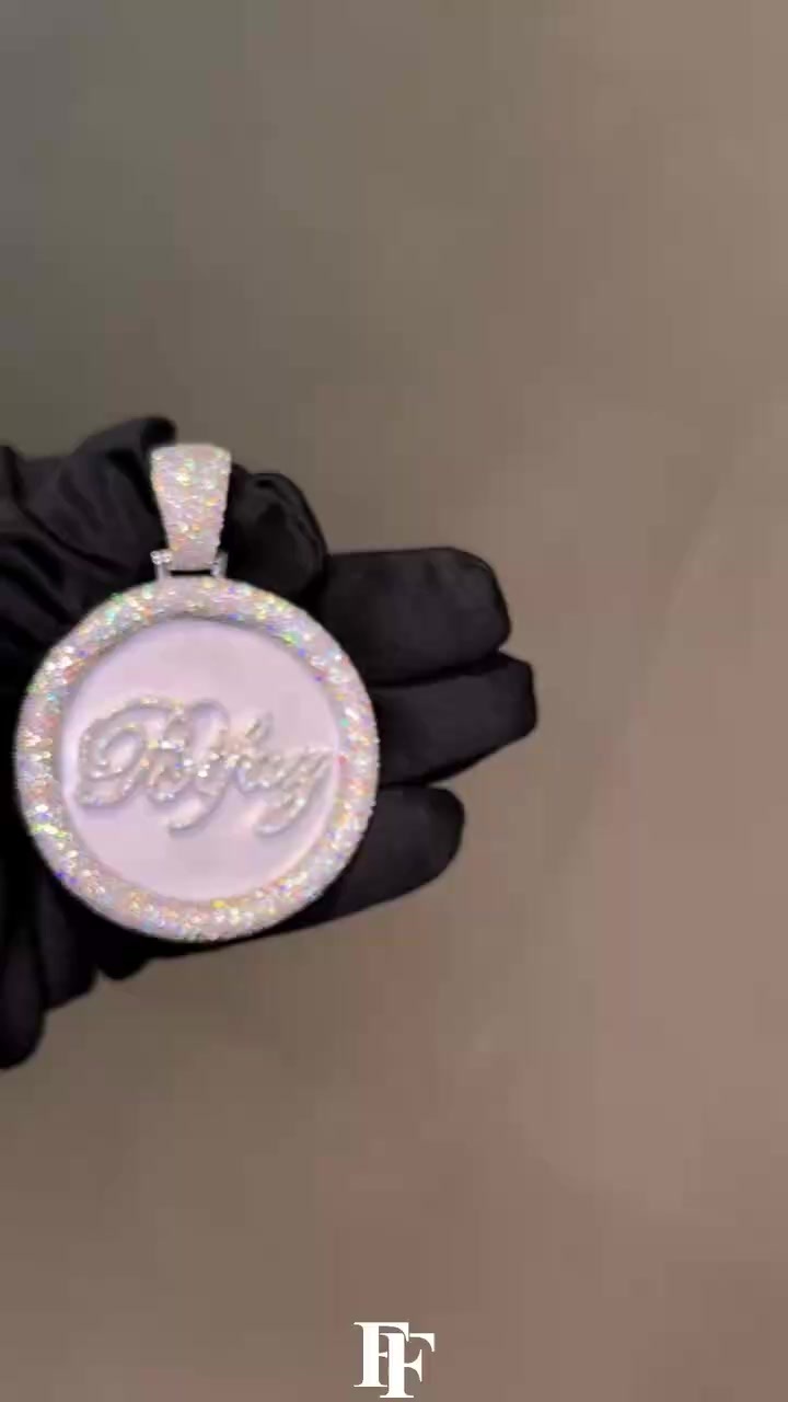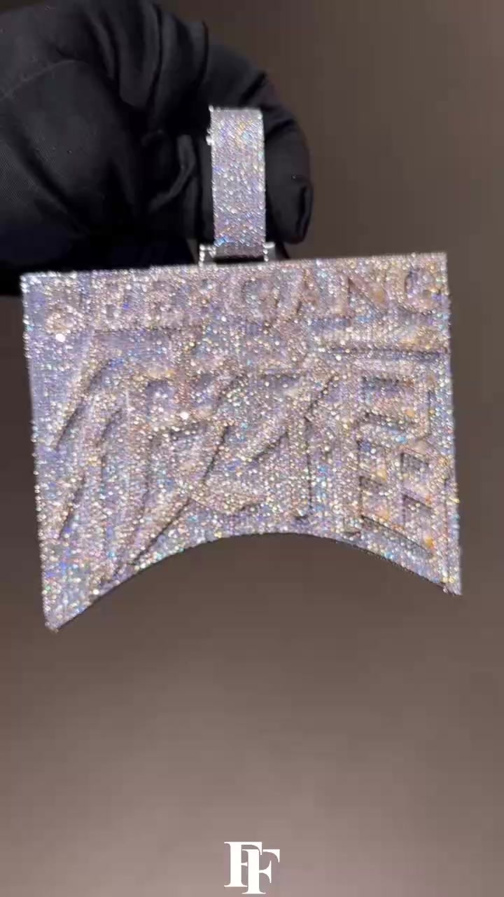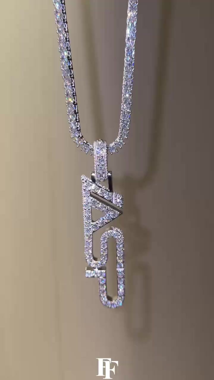 FF logo pendant Oblique three-dimensional design Mixed setting of square diamonds