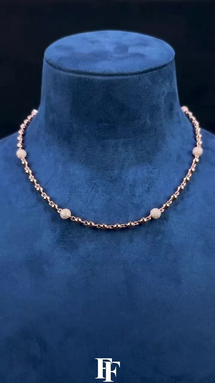 7mm bead chain Custom-made rose gold set with cultivated diamonds