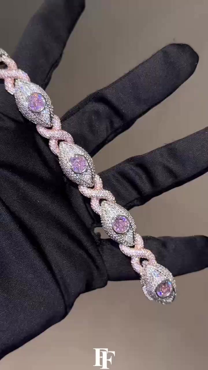 8mm two-row diamond-shaped Cuban bracelet Silver-inlaid Mosan