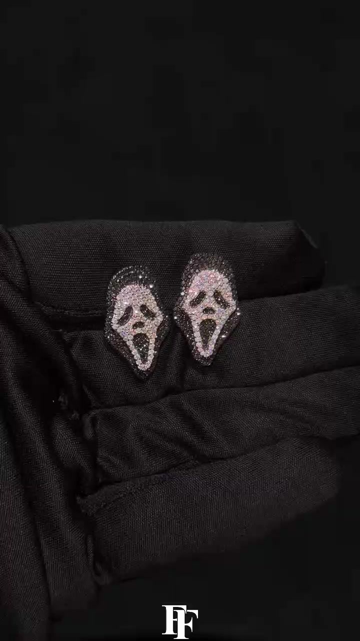 Tennis chain & K-letter pendant Ghost face stud earrings & Rock sugar stud earrings