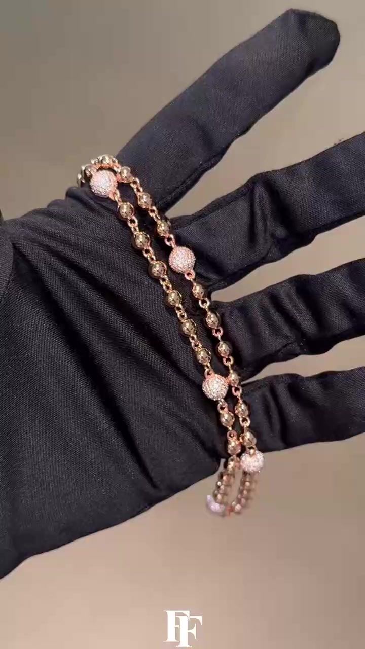 7mm bead chain Rose gold set with D VVS cultivated diamonds