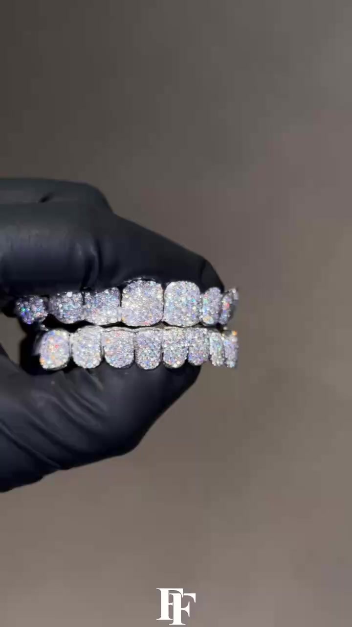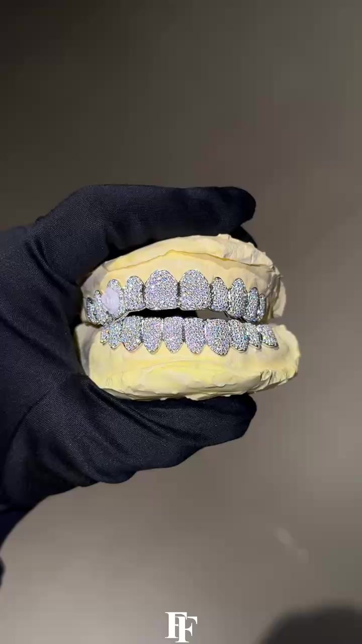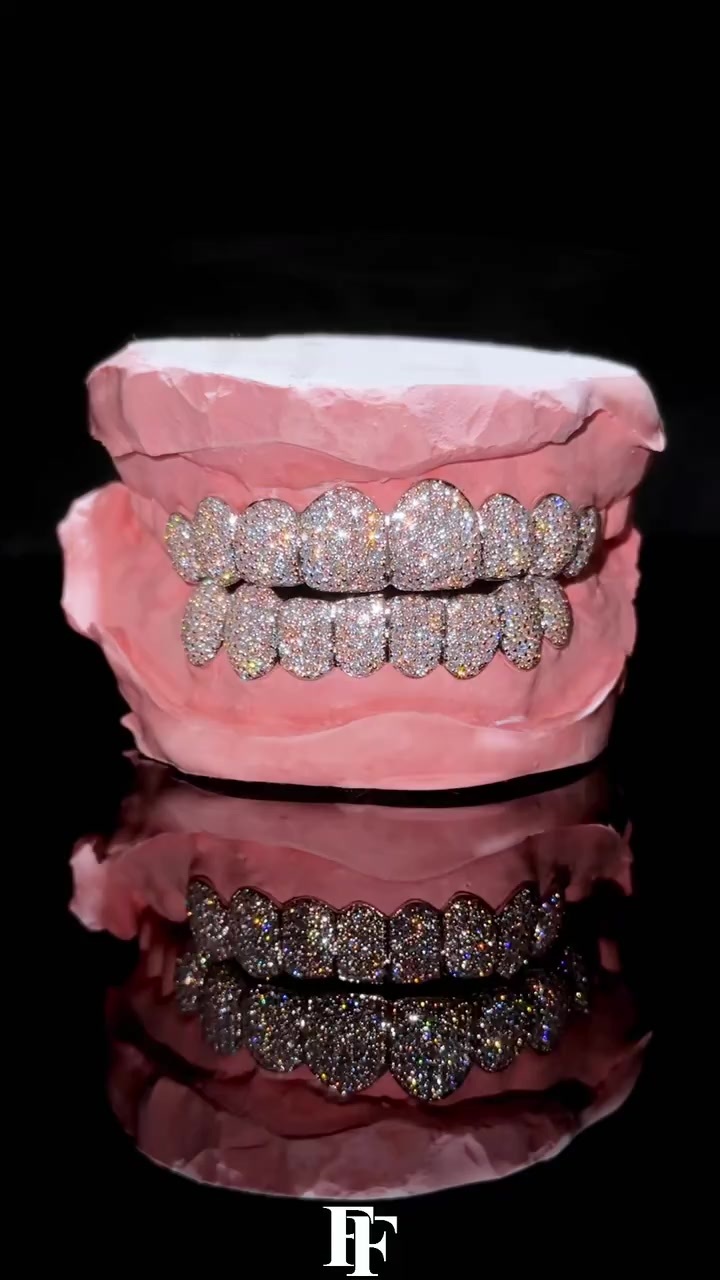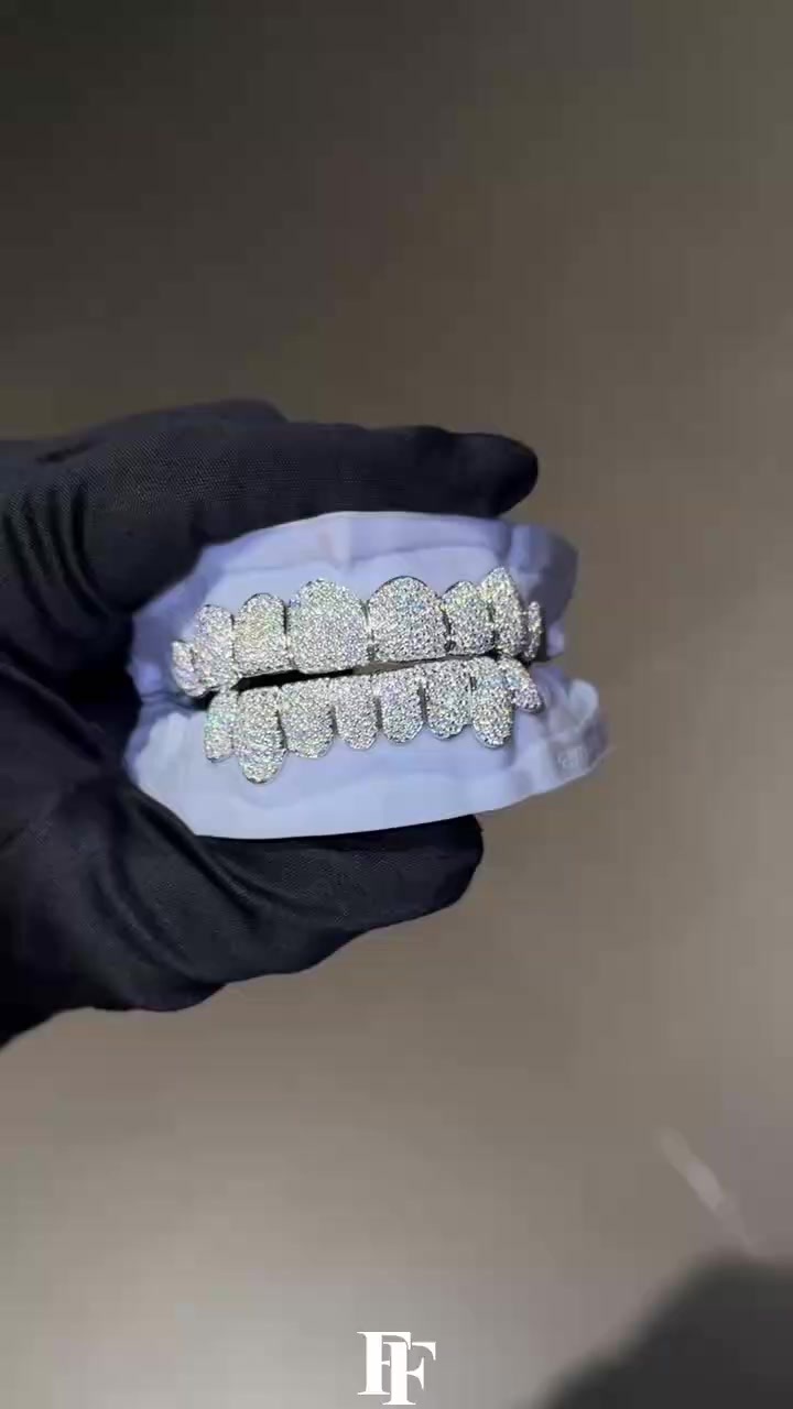 Top 8, bottom 8, full diamond Grillz Single-stud Honeycomb set