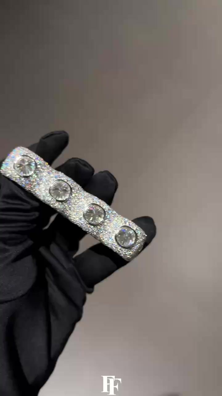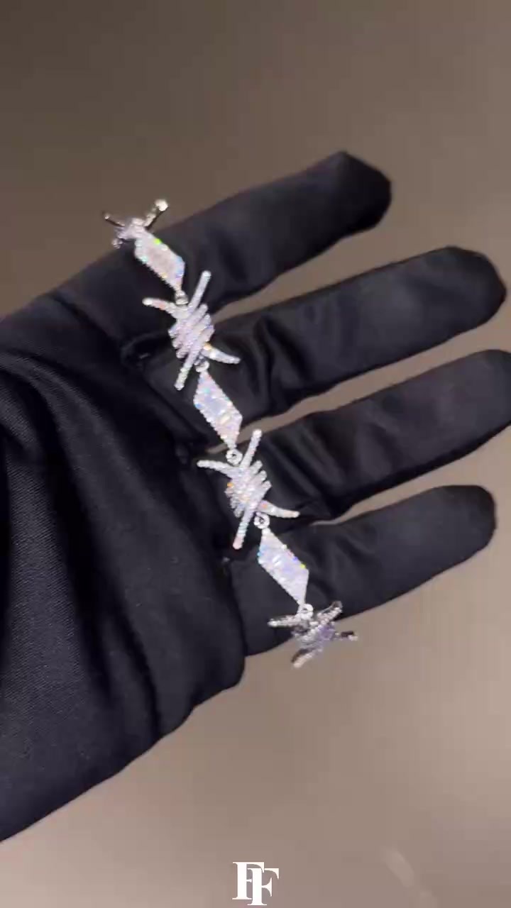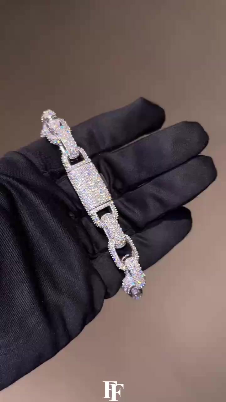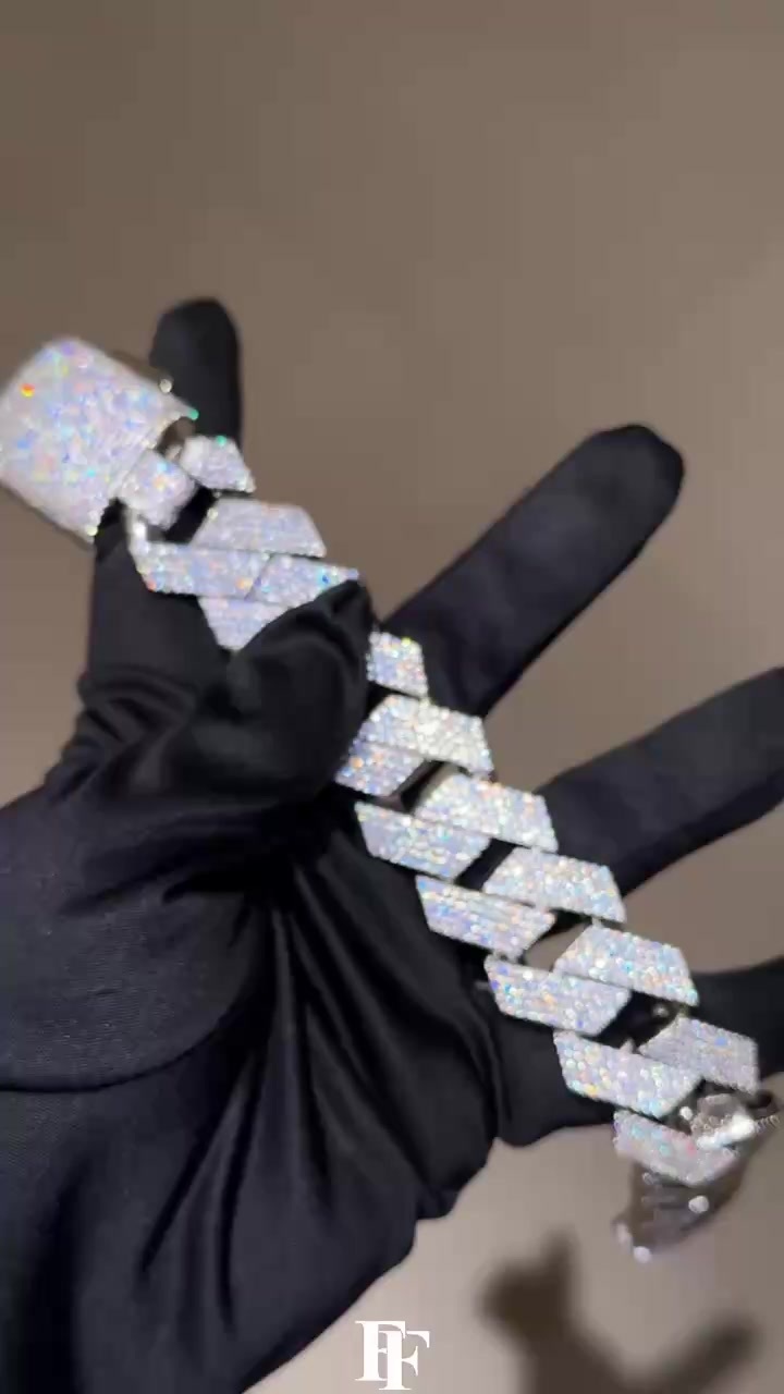 8mm two-row diamond-shaped Cuban bracelet Silver-inlaid Mosan
