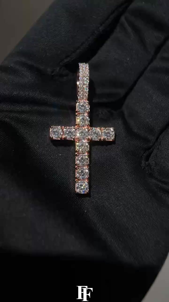 14K solid double-sided fully diamond cross