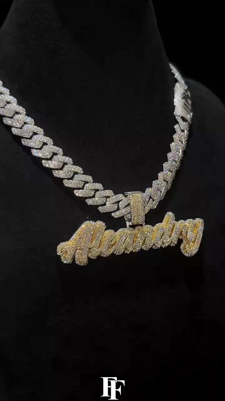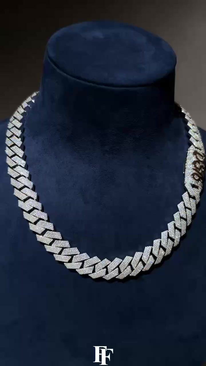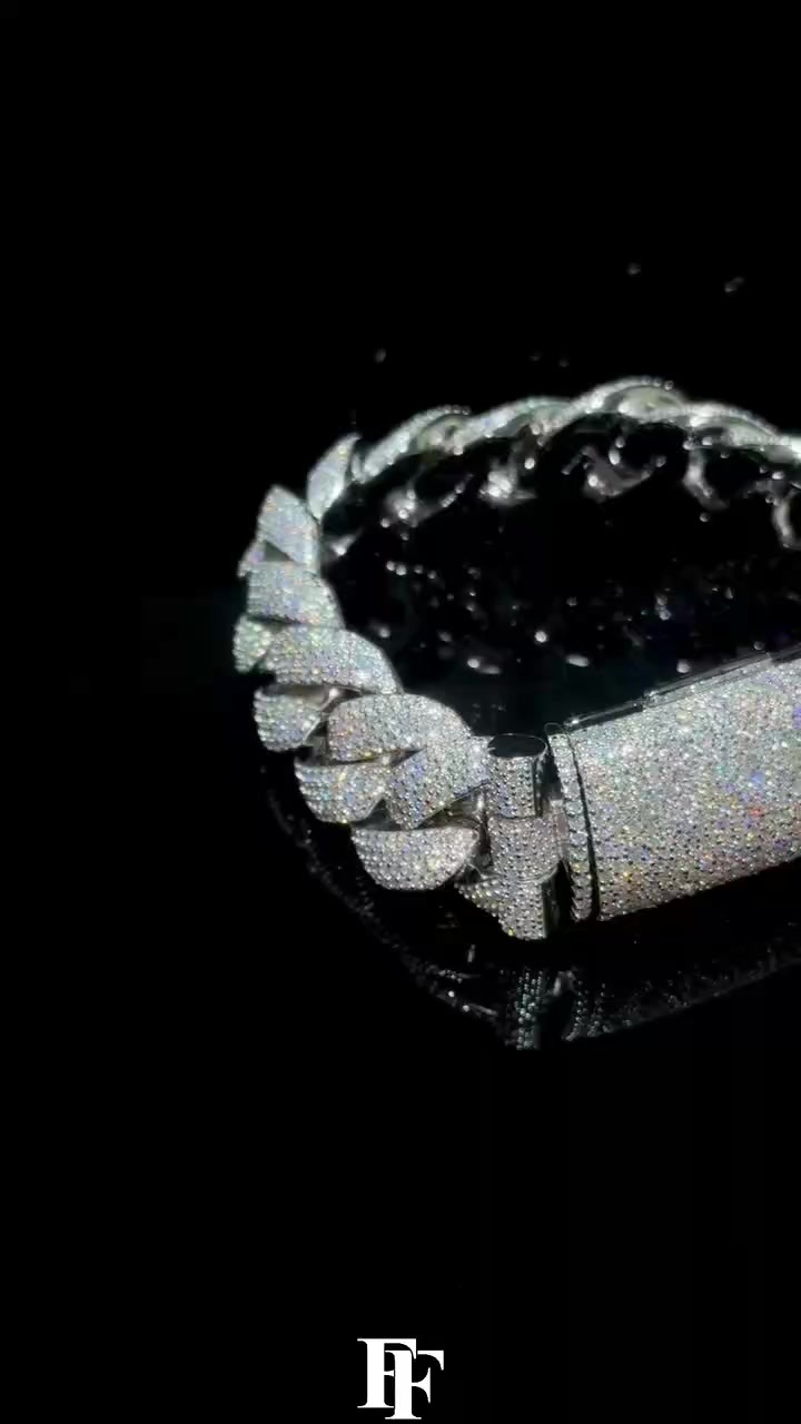 20mm smooth Miami Cuban chain Titanium steel +925 silver Moissan diamond fastener