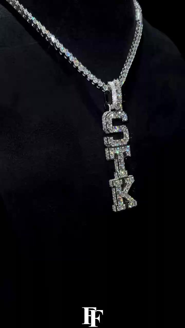 Vertical full diamond pendant "STK Large diamonds + small diamonds