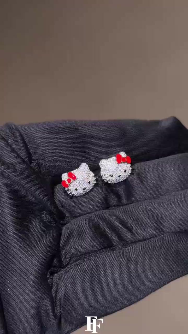 Hello Kitty is studded with stud earrings Red bow
