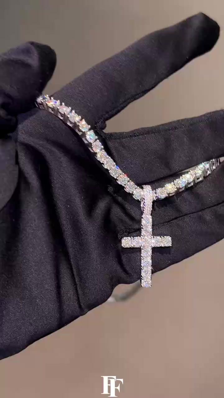 4mm tennis necklace cross pendant Tennis chain & cross pendant
