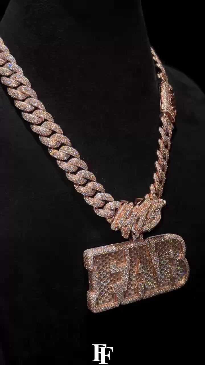 Rose gold 20mm Miami Cuban chain Customized coupler "AJ