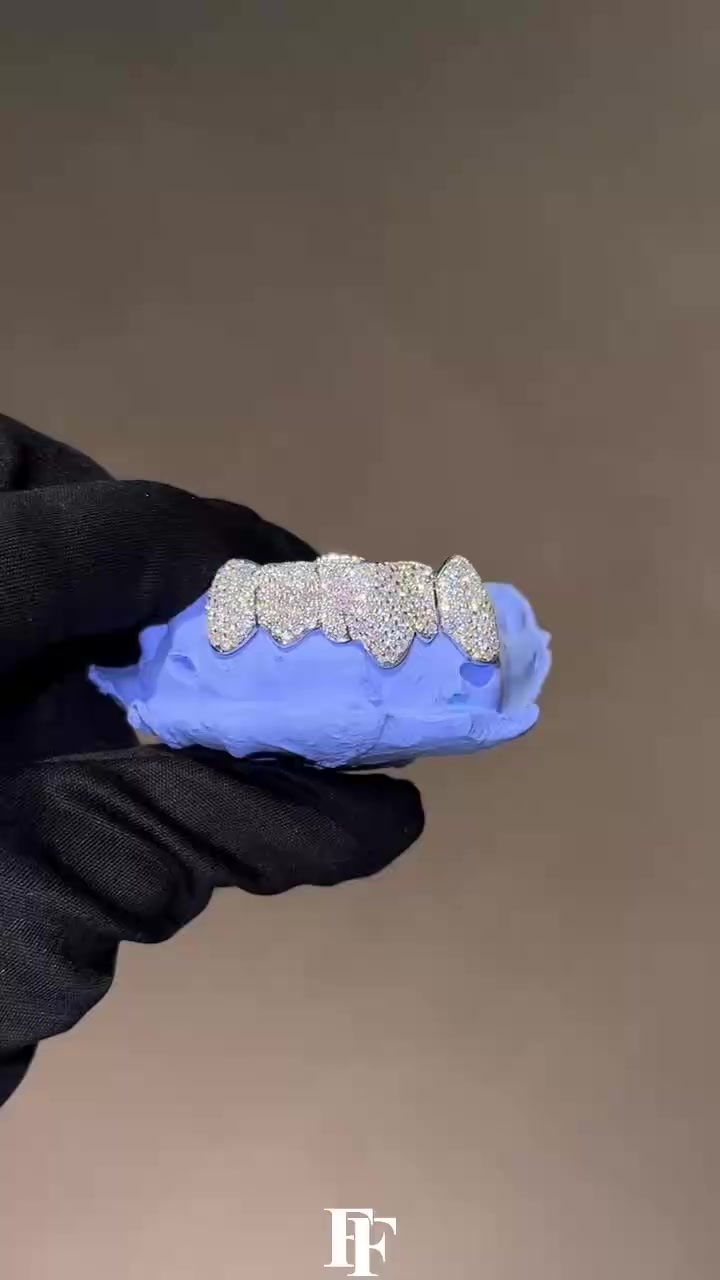 Full diamond Grillz Lower 6 Single nail honeycomb inlay